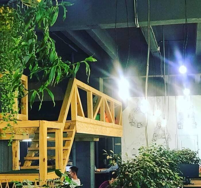 Коворкінг розташований поряд з метро за 8 хвилин пішки від станції Шулявська та за 5 хвилин пішки до найближчої зупинки громадського транспорту. Приміщення невелике, близько 100 кв.м, розраховане на 75 осіб. Усередині непогана атмосфера, яка відповідає назві: високі стелі, на підлозі лежить ковролін, багато природного світла та величезна кількість зелених насаджень. Кожне місце обладнане великим столом та зручним стільцем.