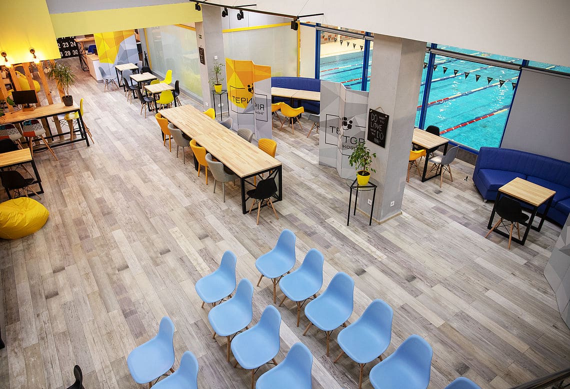 - коворкінг в одному приміщенні з аквапарком, басейн та тренажерний зал;
