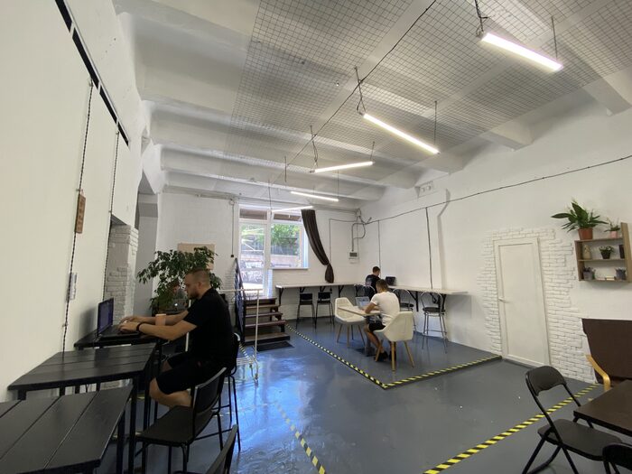 Ми знаходимося недалеко від центру міста, поміж двох парків - Шевченка і Стамбульського. Працюємо в періоди повітряних тривог а також коли вимикають світло. У нас є власний генератор, який покриває всі потреби коворкінгу у електроенергії. Якщо вам потрібно гарне робоче місце по демократичній ціні - чекаємо вас у нашому просторі!